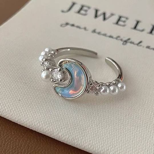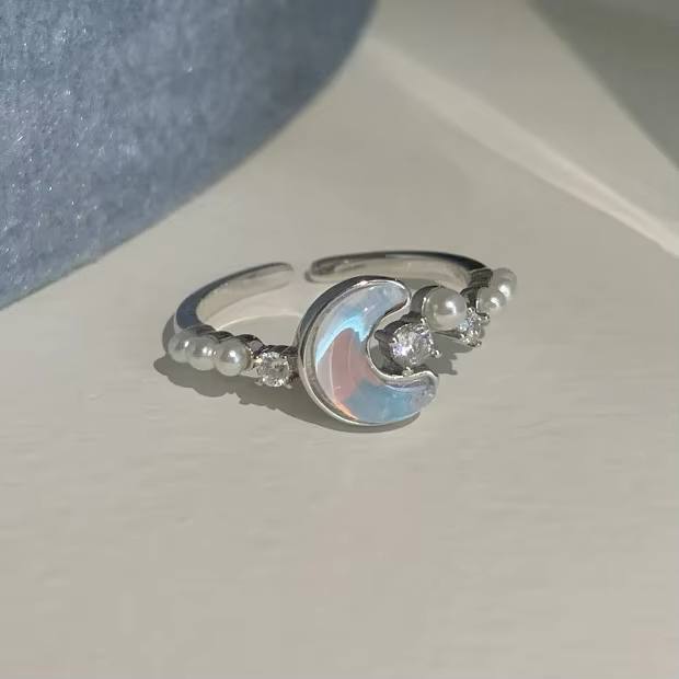 انگشتر جواهری ماه و مروارید