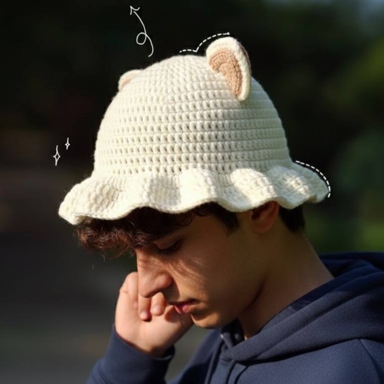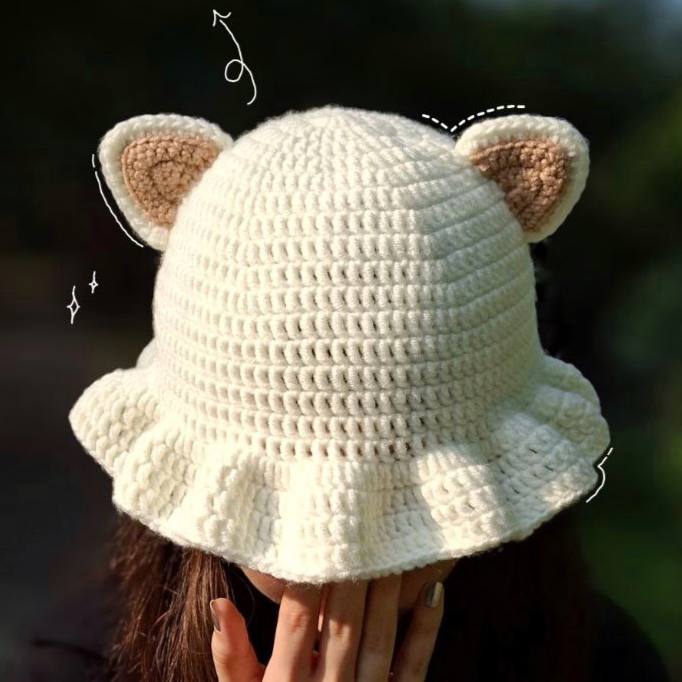 کلاه بافت گربه سفید